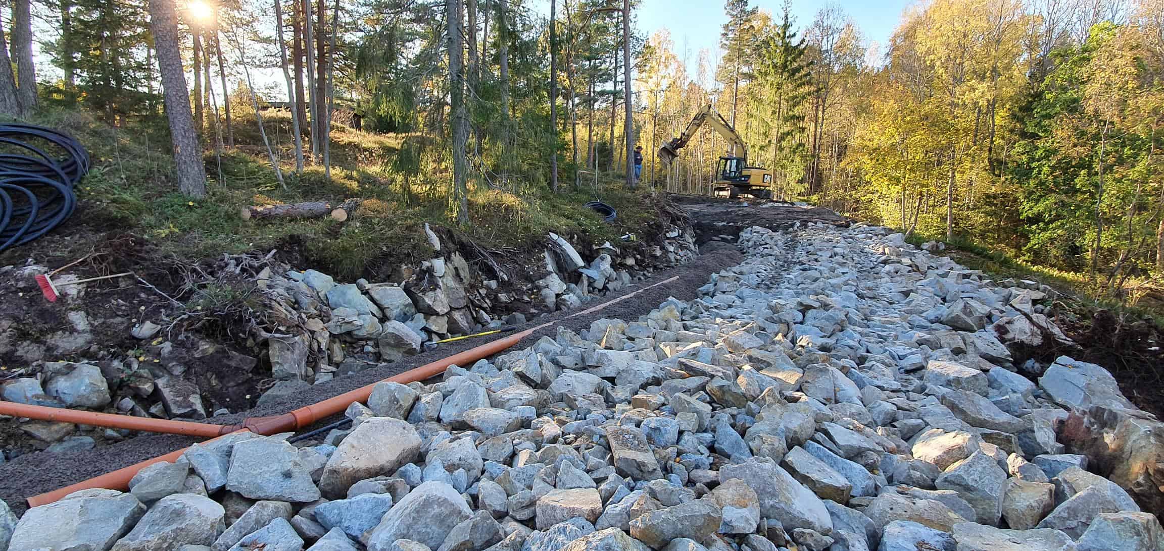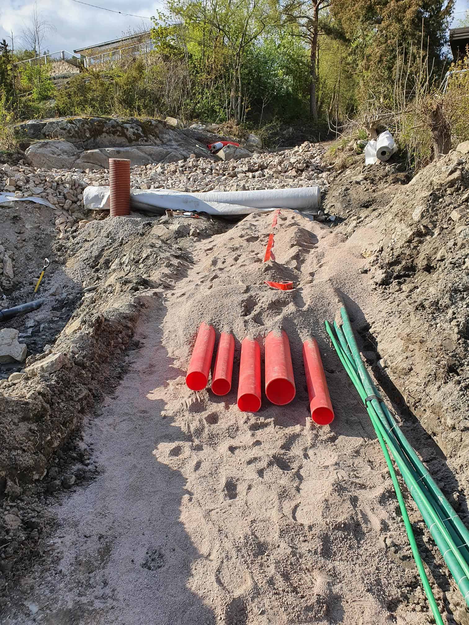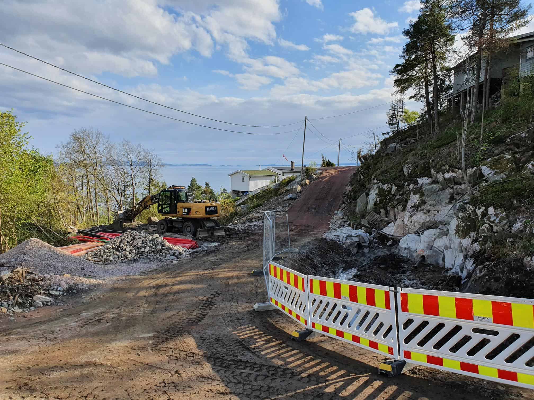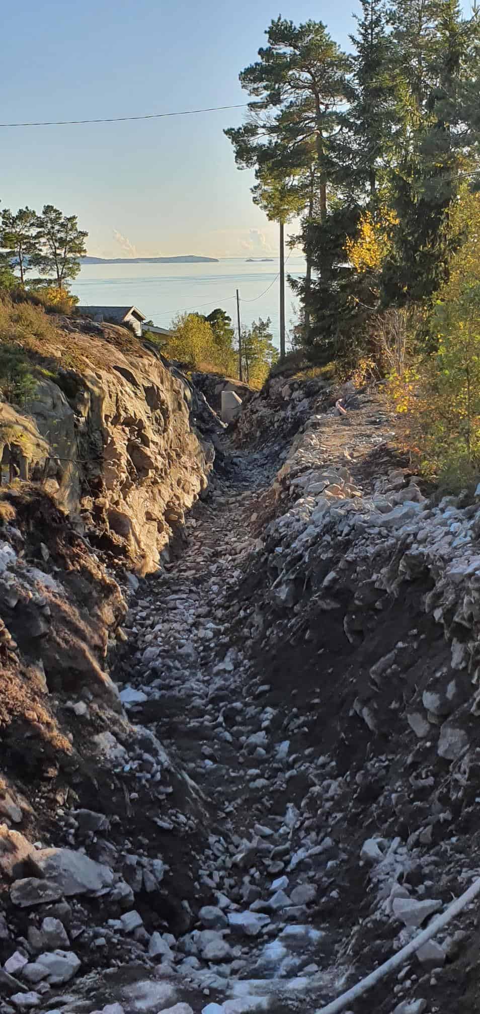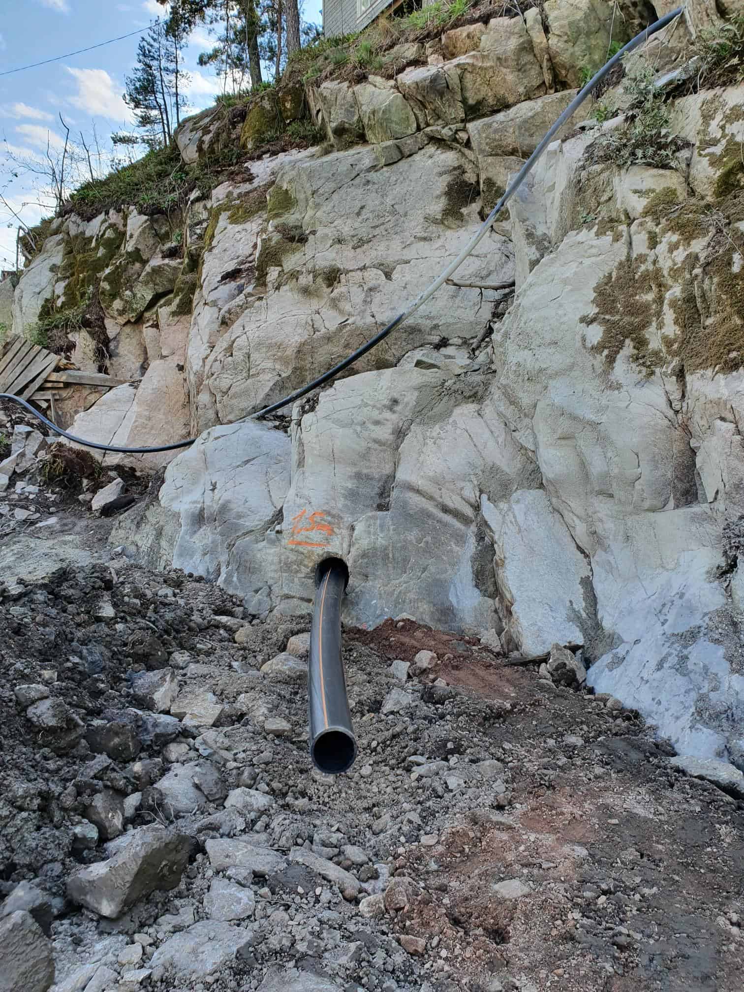 Området er har vårt utfordrende med mye fjell og fjellkløfter, noe som har gjort at vi har benyttet horisontalboring på flere av både hovedledninger og stikkledninger. Det er utført totalt 250meter horisontalboring på prosjektet.