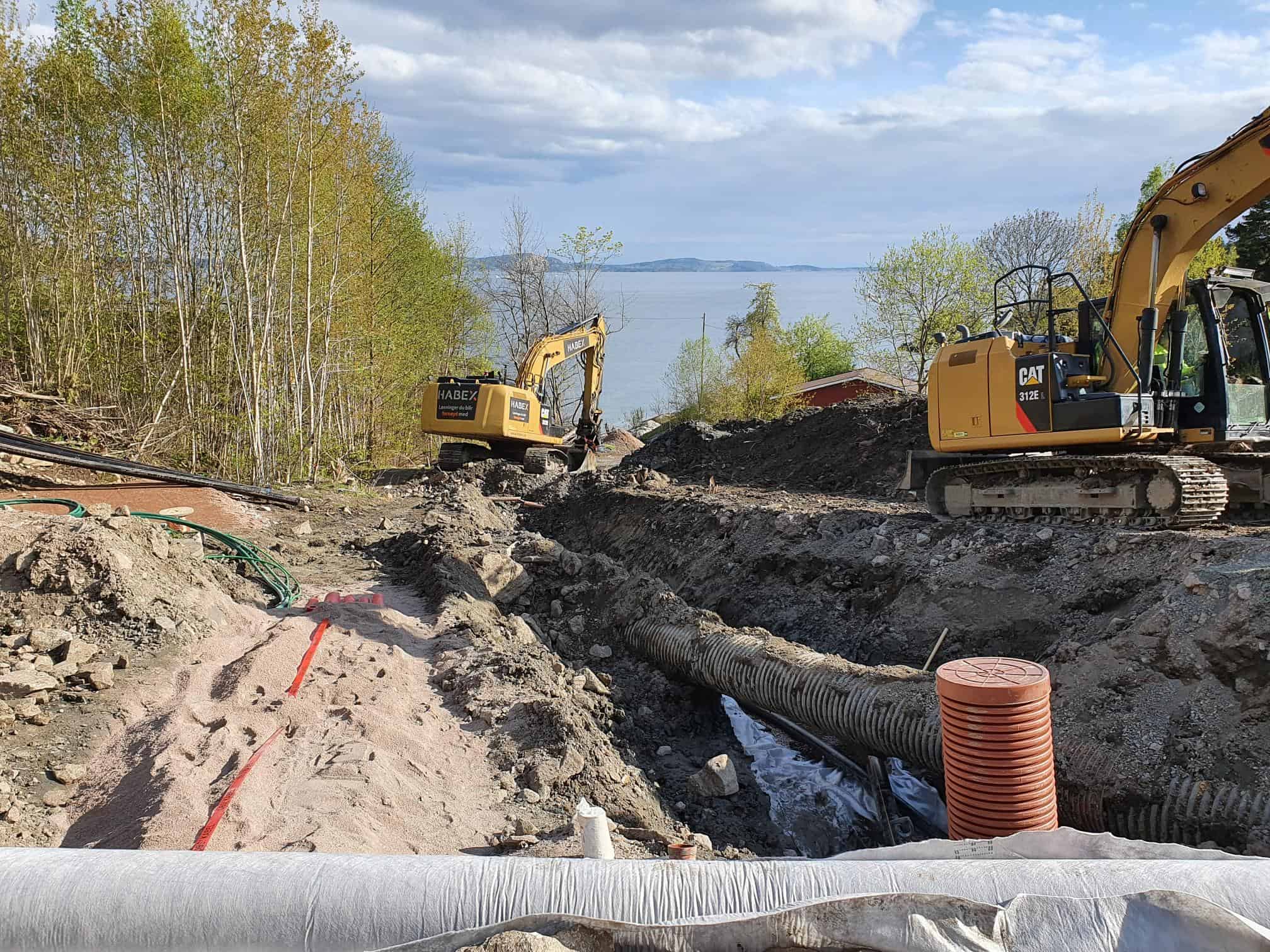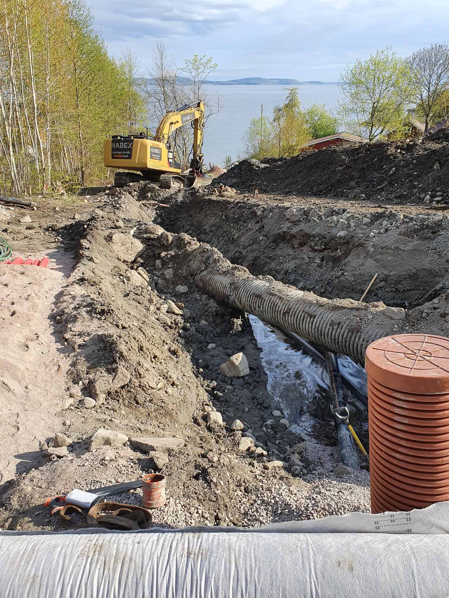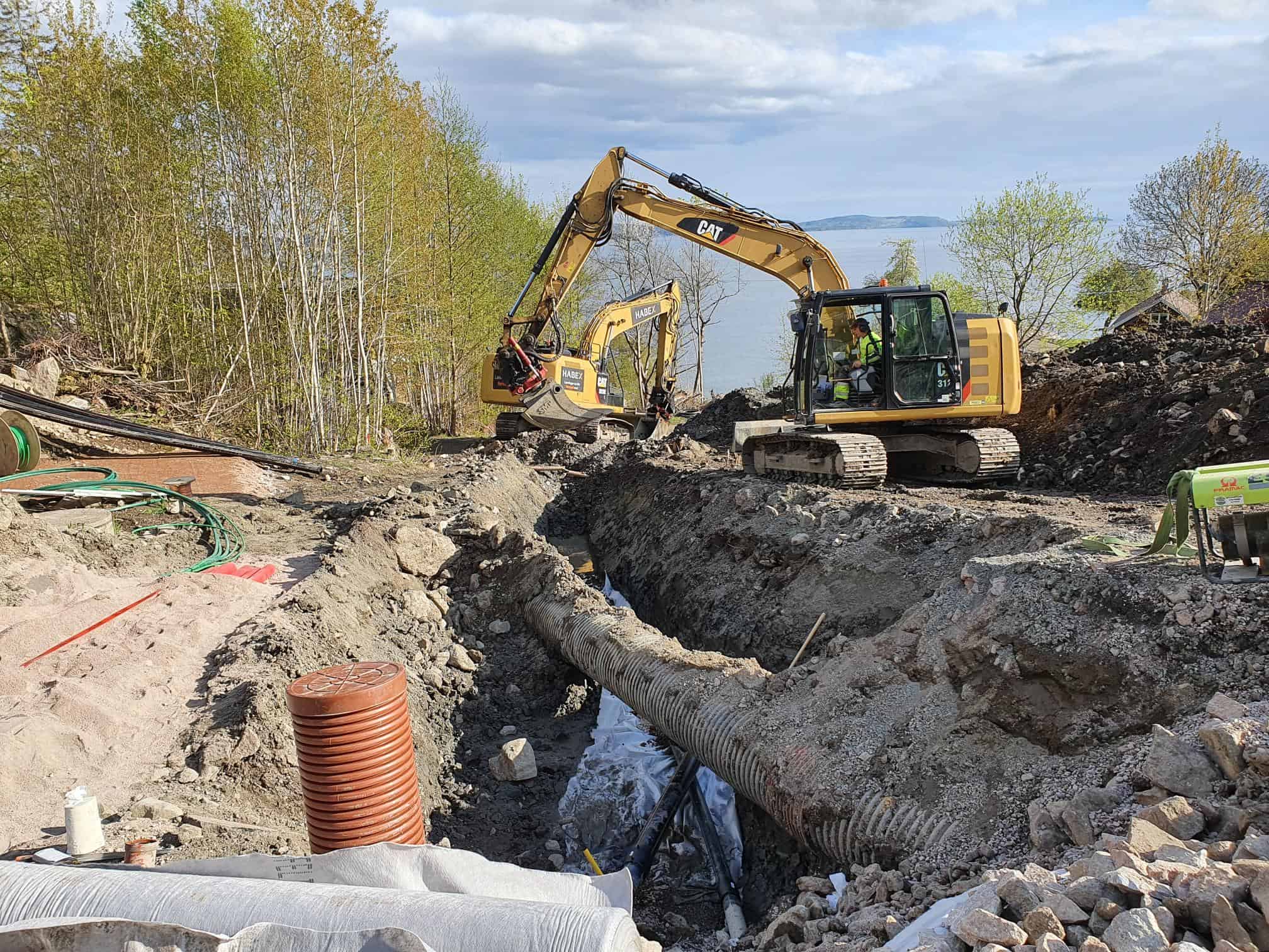Det er bygget 3730meter hovedgrøfter med 29stk vannkummer og 66stk spillvannskummer.